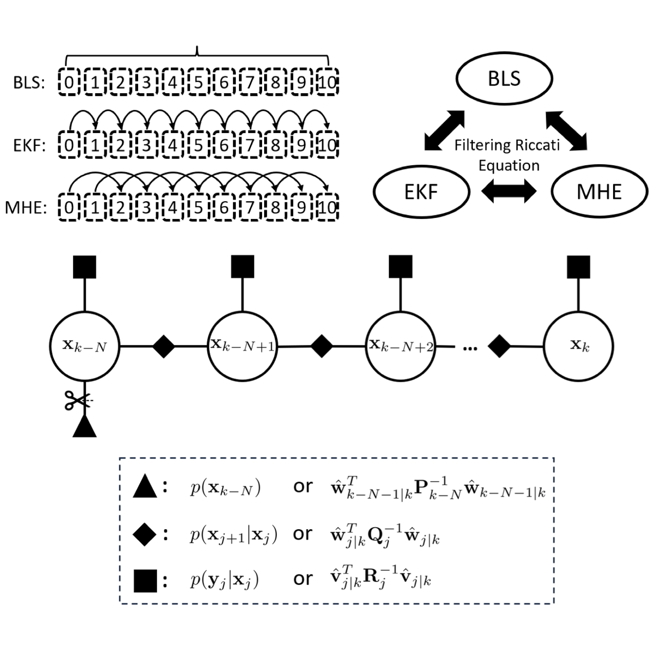 A framework unifying extended Kalman filter (EKF), factor graph optimization (FGO), and moving horizon estimation (MHE).